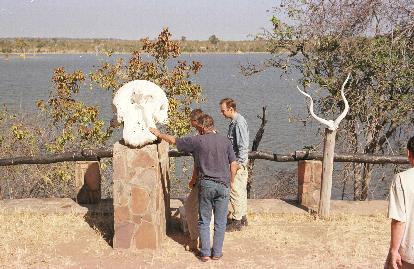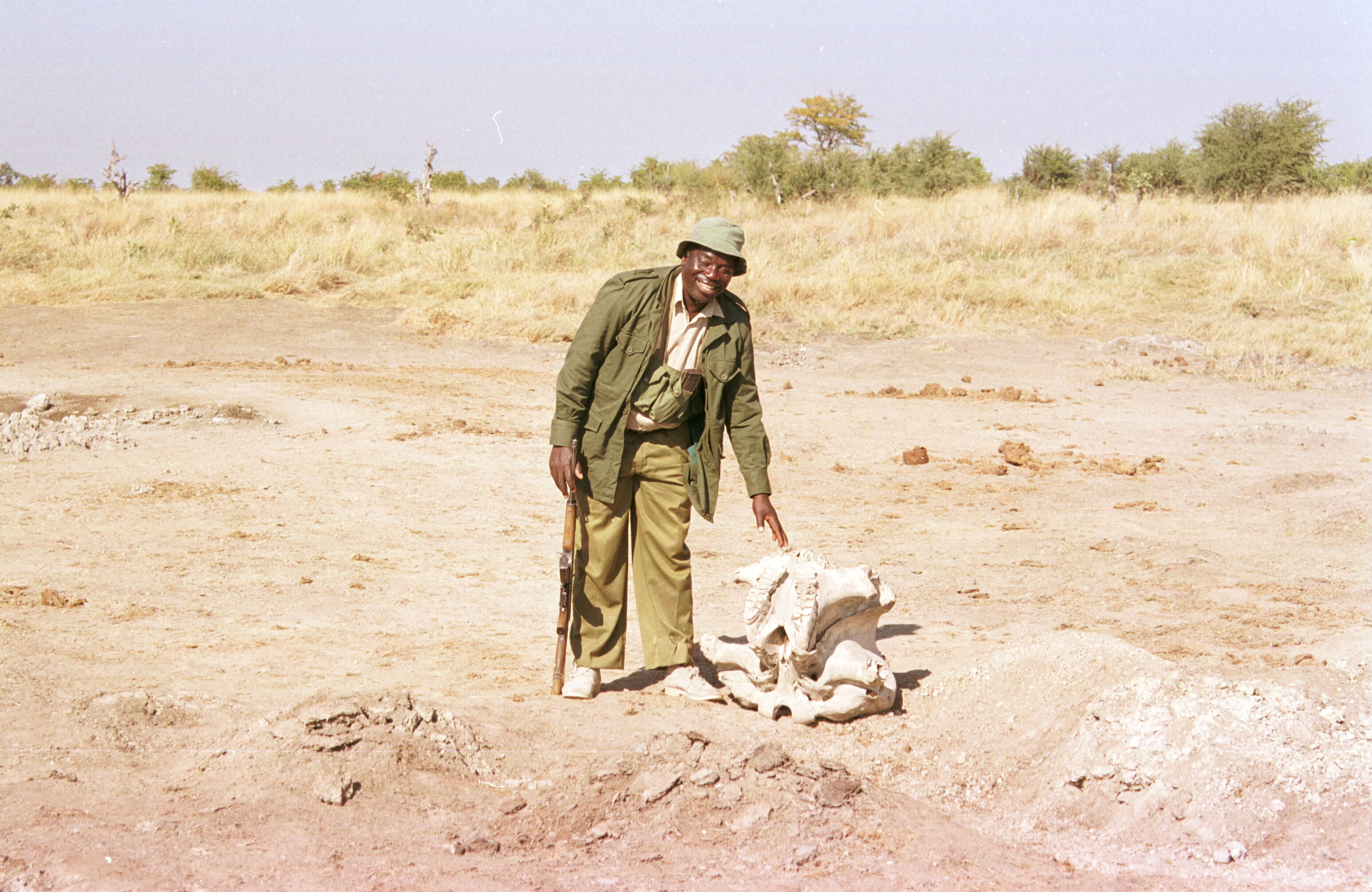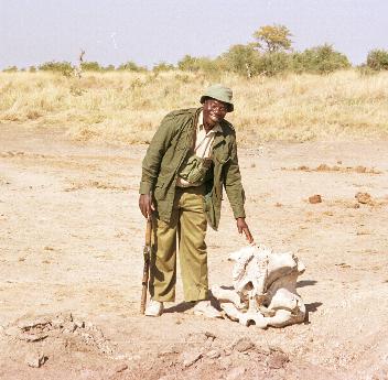 Parkführer bei Elefantenschädel
