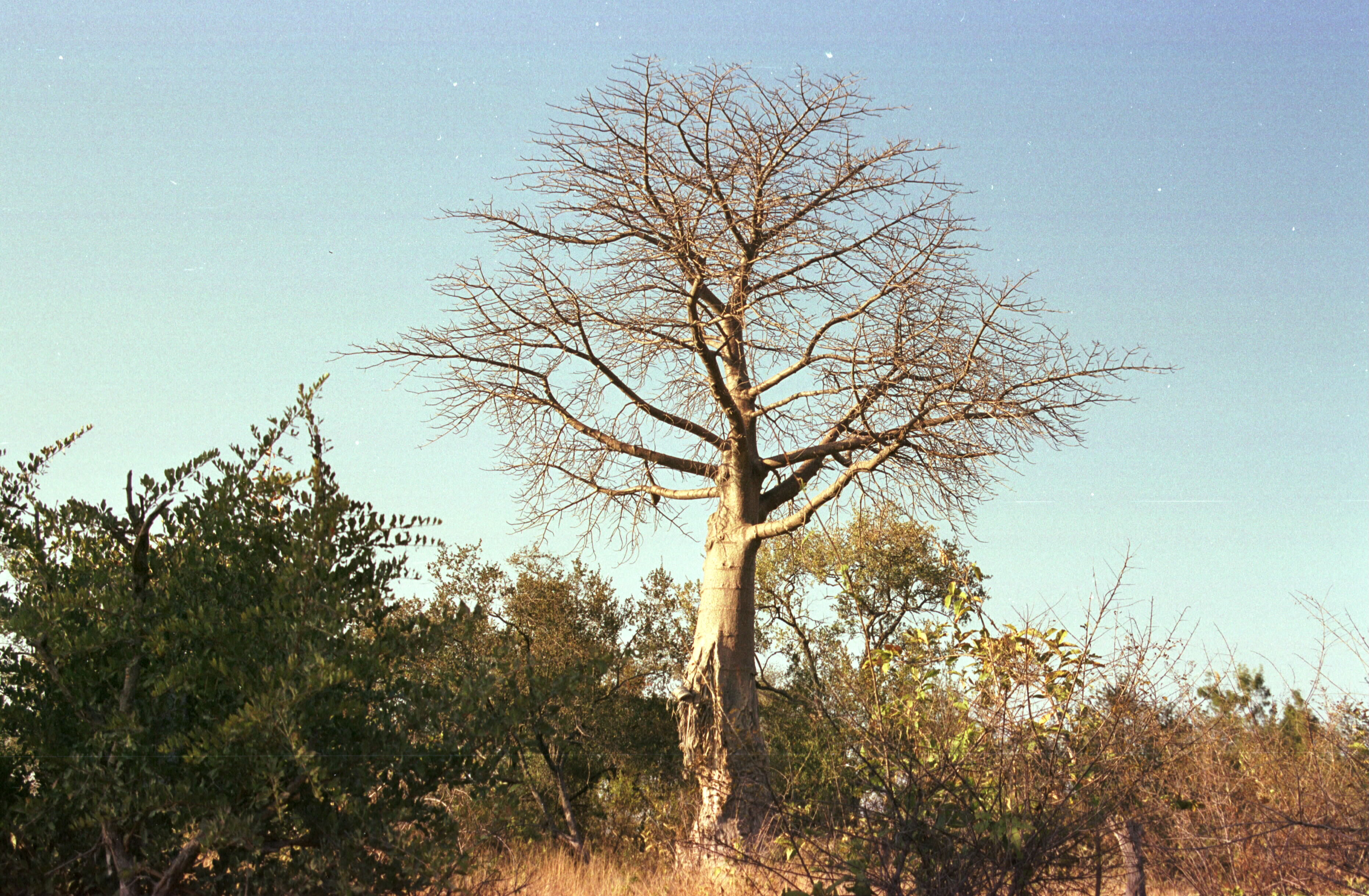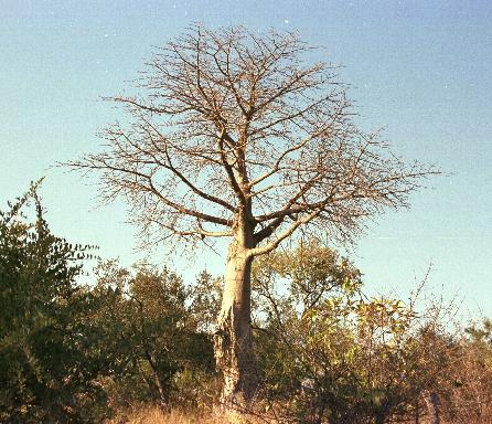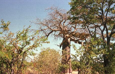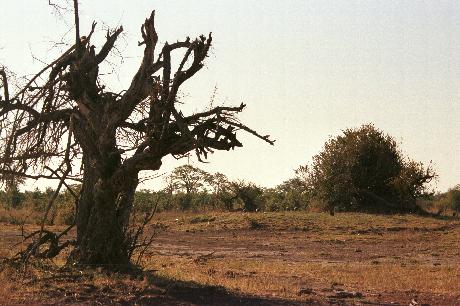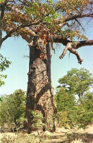 Baum mit Wetzspuren von Elefanten