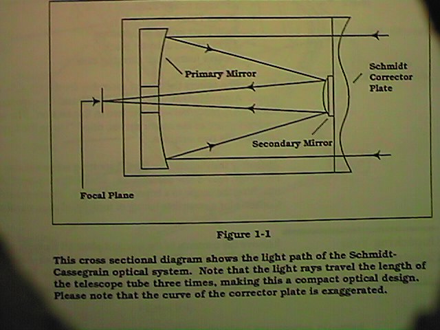 Das Schmidt-Cassegrain besteht im wesentlichen aus einem Hauptspiegel und