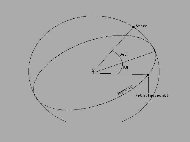 Die Koordinaten eines Sterns werden in Rektaszension (RA) und